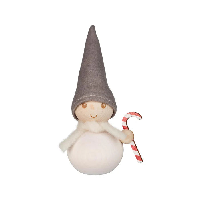 Pakkanen Karkkikeppi on tehty puuhelmistä, sillä on huopainen lakki, kaulassa huivi ja kädessään punavalkoinen karkkikeppi. Pakkastonttu sopii kattauksen koristeeksi, asetelmaksi ikkunalle ja lahjaksi laadukkaan, kotimaisen käsityön ystäville