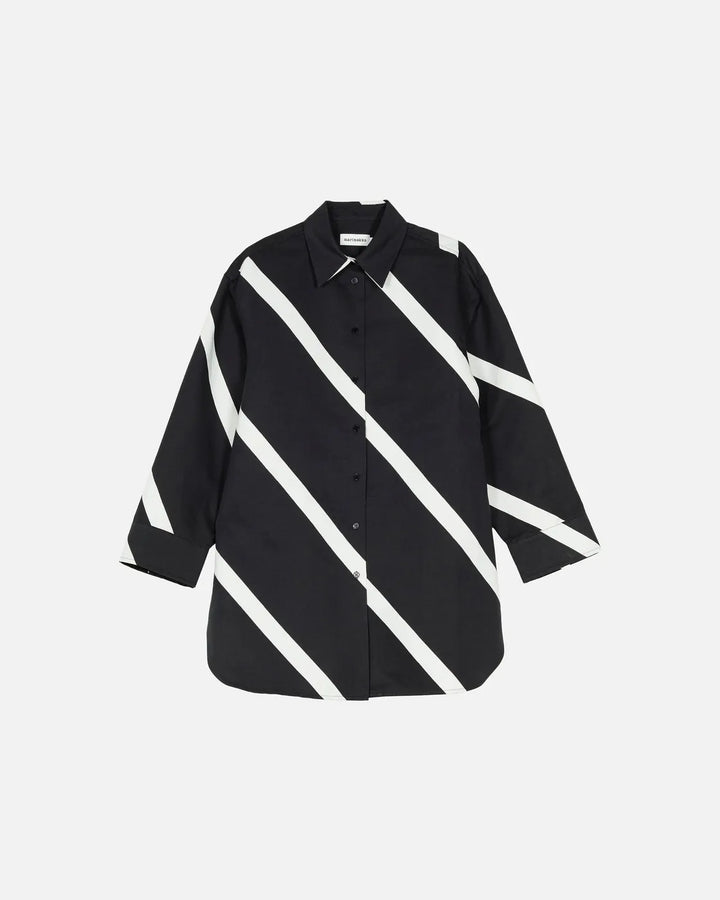 Kuvaus Heitto-kauluspaidassa on väljä istuvuus, suora leikkaus sekä Basso-kuosi, joka on painettu Helsingissä. Kauluspaidassa on...