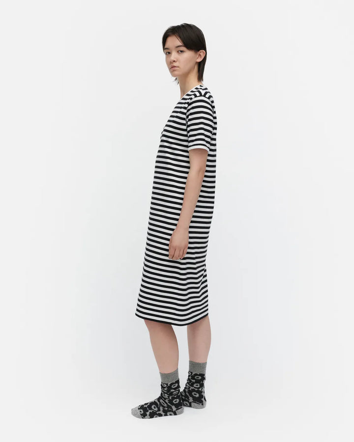 Kuvaus Hetta II -yömekon kuosina on Tasaraita. Mekon istuvuus on rento, ja leikkaus suora. Pääntiellä...