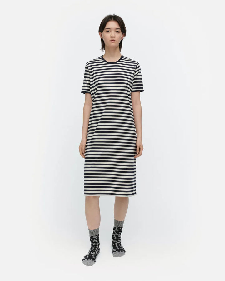 Väri Tummansininen Kuvaus Hetta II -yömekon kuosina on Tasaraita. Mekon istuvuus on rento, ja leikkaus...