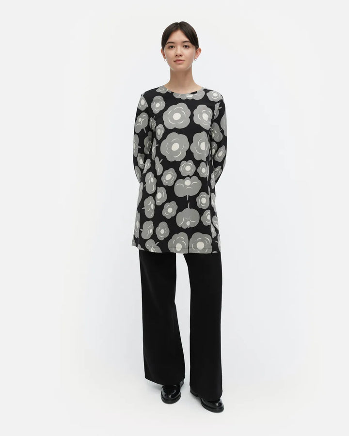 Kuvaus Kevät-tunika on valmistettu puuvillatrikoosta ja siinä on niukka istuvuus, A-linjainen leikkaus ja Tumma-kuosi. Tunikassa...