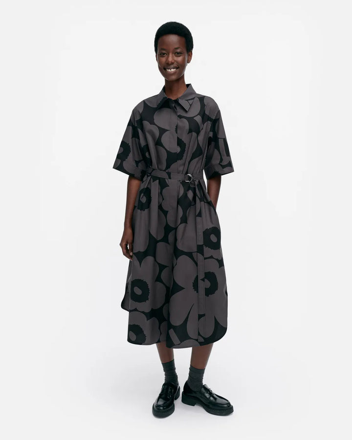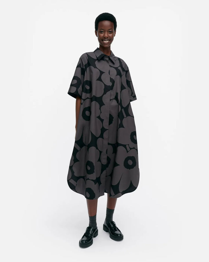 Kuvaus Popliini-paitamekko on valmistettu luomupuuvillapopliinista ja siinä on rento istuvuus, A-linjainen leikkaus sekä Unikko -kuosi....