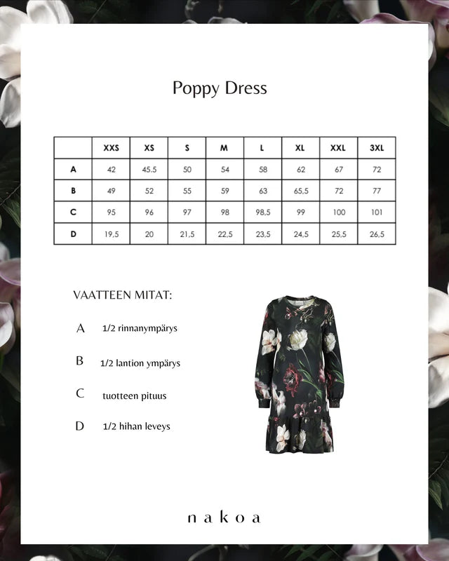 Poppy Dress ovat täydellinen valinta arkeen! Collegemekko on vaatekaapin mukavin luottotuote, joka on helppo valinta jokaiseen päivään. Poppy Dress on rento, mutta silti naisellinen, sillä Nakoan Poppy mekon yksityiskohtana on kaunis frillahelma. Portgalissa valmistettu Kangas on luomupuuvillasta valmistettua collegea, joka sopii mukavasti viileneviin päiviin.